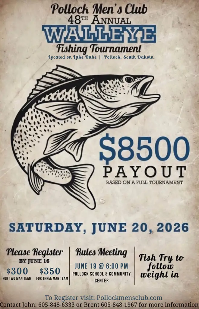 Pollock Men’s Club 48th Annual Walleye Tournament.